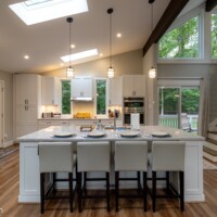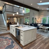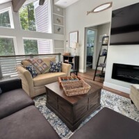 Both the living room and the loft space have a 65″ smart TV and an electric fireplace. Nicely appointed kitchen with a large island and four bar stools, and a separate dining area that seats eight. The main level bedroom has an electric fireplace and private balcony. All bedrooms have a 55″ smart TV. Enjoy high-speed wireless Internet for streaming or working, full washer/dryer, propane grill and a wood-burning fire pit.
