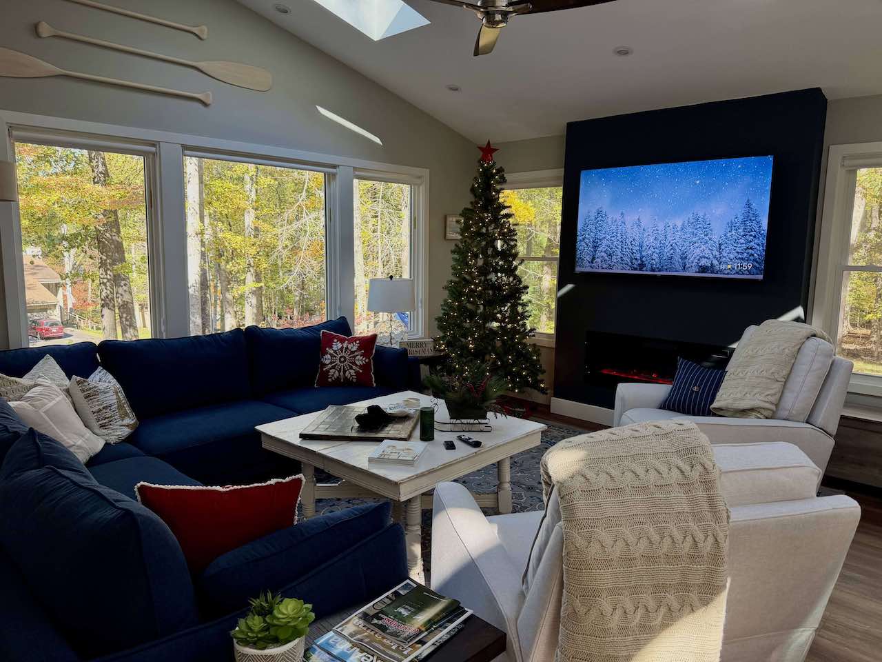 Spend the Holidays at Treehouse at Lake Anna! We have it decorated with all the trimmings with TWO lighted and decorated Christmas Trees and three fireplace so you to cozy up and enjoy Christmas and New Years with us, too!